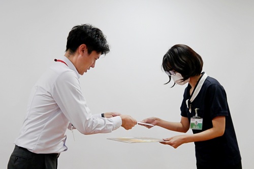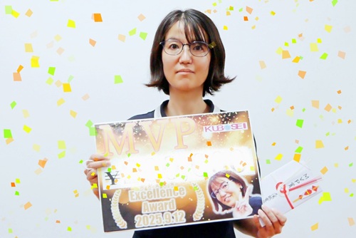 優秀チャレンジ賞として、技術の清水さんの日頃の業務への頑張りを表彰しました。